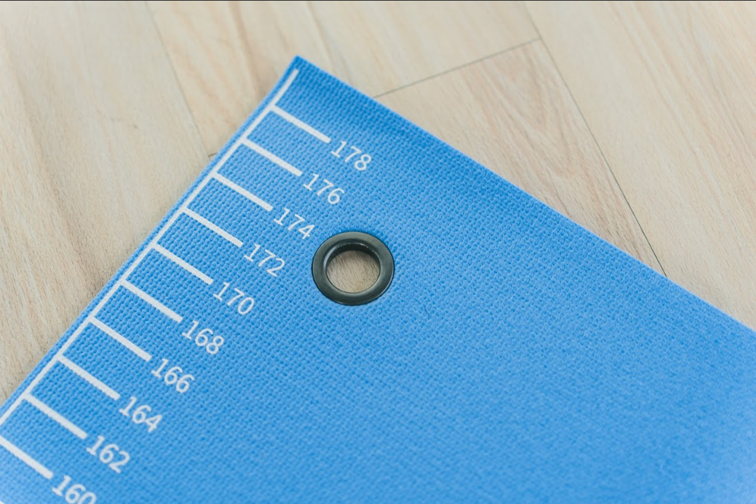 - 內建符合國健署體適能標準的25公分基準線與延伸刻度。 第一標線兩端設有腳跟指示點,中心垂直設有第二刻度。
