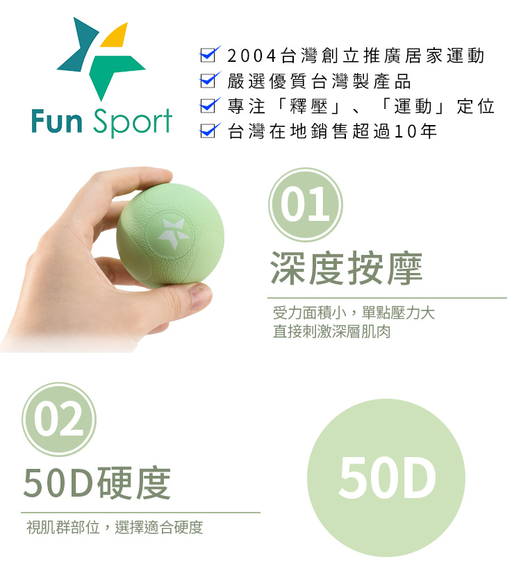 雷力斯-肌筋膜按摩球(6.5cm-50D)(草原綠)-Fun Sport
