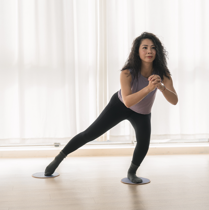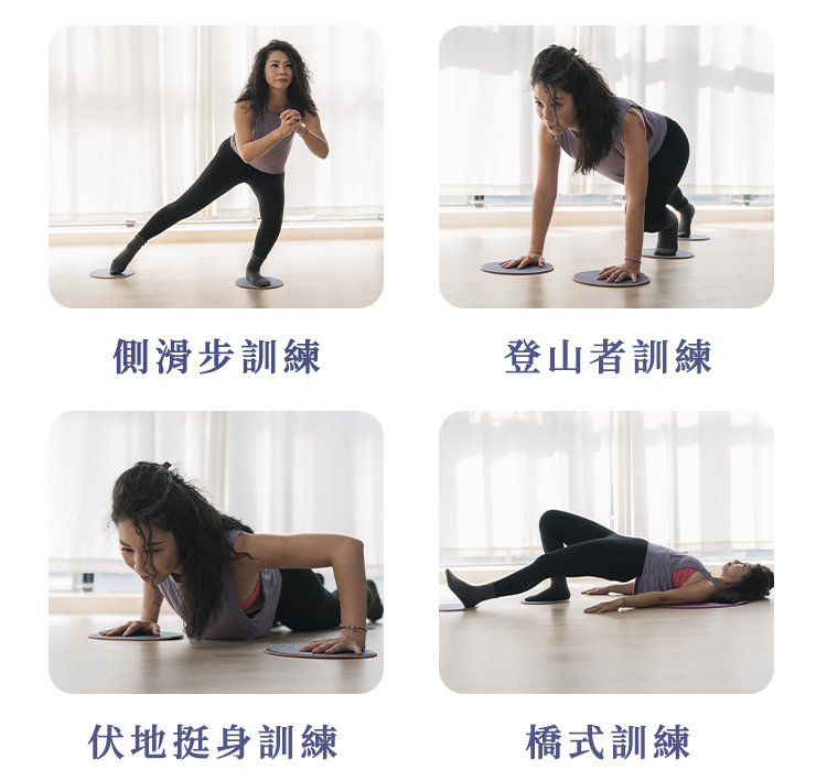 滑盤等於以自身重量來控制動作,此時全身肌群的協調就很重要,大小肌群的應變控制,漸進強化肌肉的肌耐力,長久鍛鍊更會發現整個核心雕塑與力量強化的效果。滑盤是最迷你的健身房,沒試過的朋友,真的要體驗
