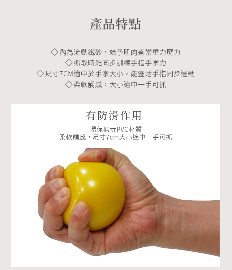 尺寸7cm/8cm適中於手掌大小,能靈活手指同步運動